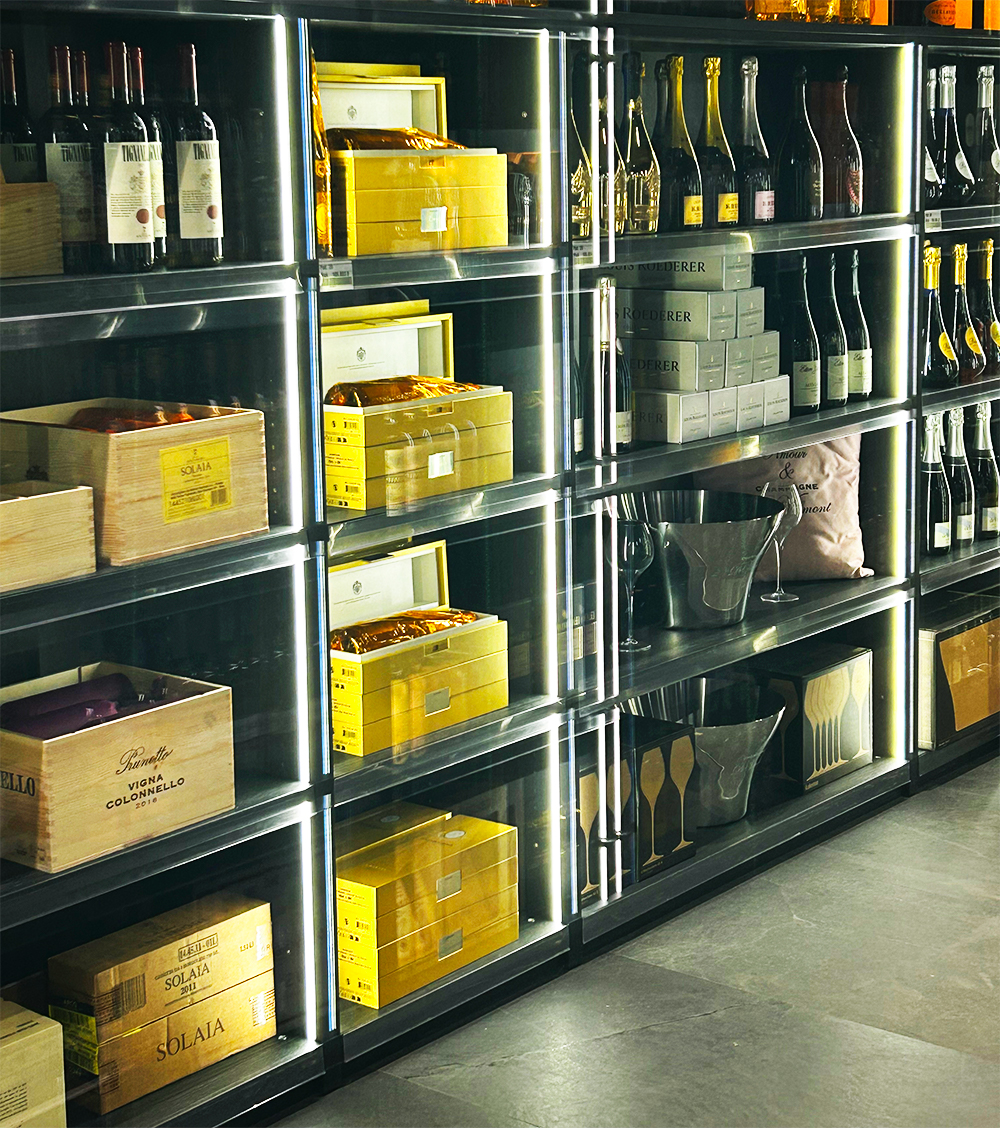 Più di 40 etichette tra le più prestigiose al mondo e marchi del calibro di Antinori, Dom Perignon, Lous Roederer e tante altre eccellenze a tua disposizione.